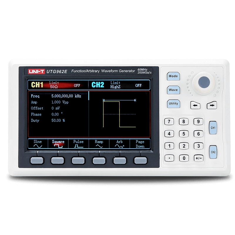 UTG2025A başlangıç seviyesi bir fonksiyon jeneratörü olarak tanımlanmakla birlikte; 25 MHz’e kadar frekans, 14 bit Çözünürlük ve 200 adet dahili arbitrary dalga formu ile hem öğrenciler hem mühendisler için kapsamlı özelliklere sahip fiyat/performans ürünüdür.