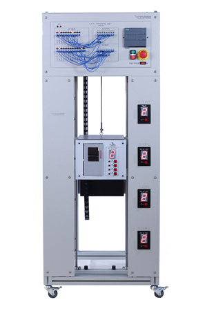 Elevator Training set is a 4-floor model designed for training purposes in order to see the PLC and electromechanic carrier applications together. It is designed in a transparent structure order to examine the mechanical and electronic systems.