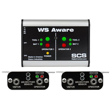 Continuously monitors the path-to-ground integrity of two operators, two conductive or dissipative worksurfaces, and two metal tools; meets ANSI/ESD S20.20 in accordance with ESD TR1.0-01-01.
