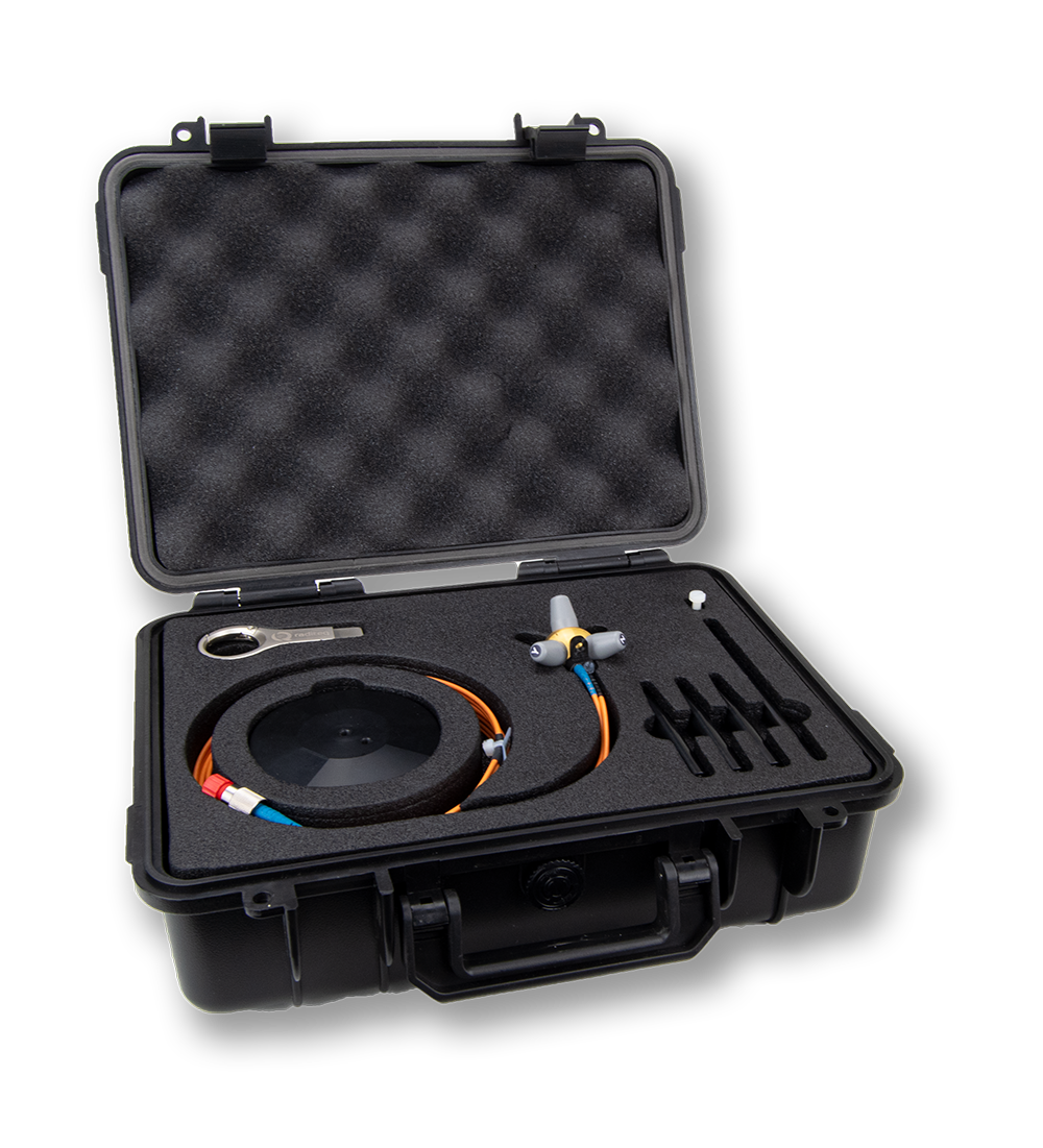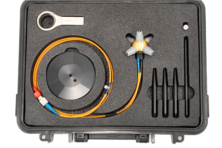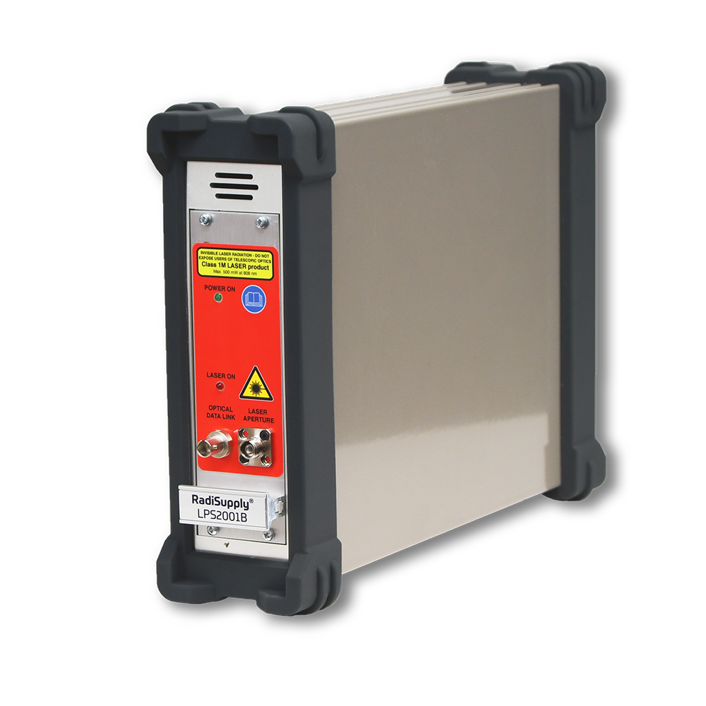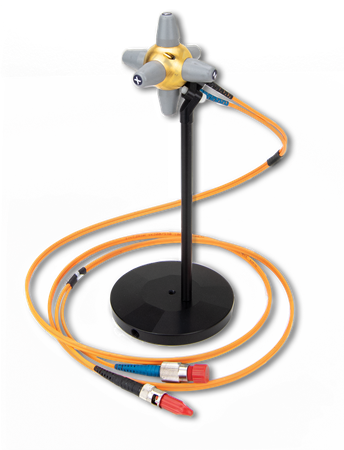 Battery powered probes present many disadvantages as opposed to laser powered probes, these include; influence of galvanic wires on measured E-field, battery drainage and limited overnight testing. Unlike other probes, the RadiSense® E-field probe is powered by a high-performance laser, whose light is sent to the probe via a fiber optic cable and feeds the low-noise amplifier and a single microprocessor chip, reads the antennas and transmits the measured values to a PC via a second fiber optic cable.
