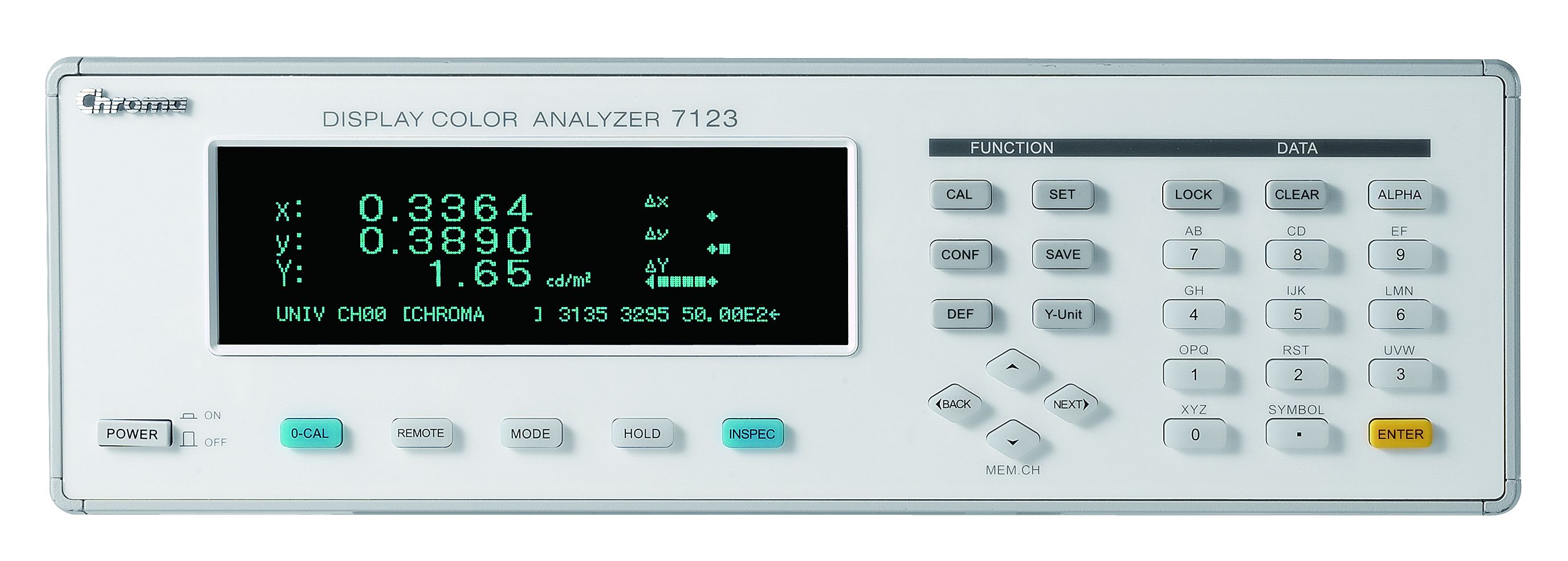 Chroma 7123 Display Color Analyzer adopts the design of contact and non-contact type measurements based on the probe selected to measure the luminance and chromaticity of display panels. Developed with the most advanced digital signal processor and the technology of optoelectronic transfer as well as precision optical parts and circuit design, the 7123 Display Color Analyzer is capable of performing high speed, accurate and stable color tests.