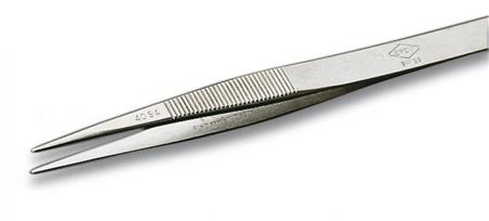 SMD tweezers with round tips, dia. 0.4 mm/.015 Inch. Serrated finger grips for secure handling. For gripping small wires and cylindrical components.