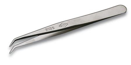 - Precision tweezers, curved 40°, with pointed tips, for precision work such as assembly on printed-circuit boards.