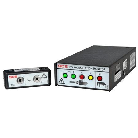 • Continuously monitors 2 operator dual-wire wrist straps and 1 worksurface mat