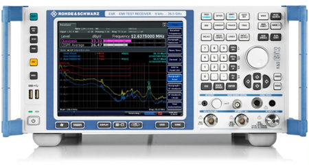 R&S®ESR, 10 Hz’den 26.5 GHz’e kadar frekans ölçüm aralığına sahip bir EMI test alıcısıdır ve CISPR 16-1-1 standardına uygundur. Bu cihaz, geleneksel kademeli frekans taramasıyla veya çok yüksek frekanslarda FFT tabanlı bir zaman bölgesi taramasıyla ölçüm yapar. Bunun yanı sıra, R&S®ESR laboratuvar uygulamaları için tam özellikli, güçlü bir sinyal ve spektrum analizörü olarak işlev görür. Geniş bir yelpazedeki hata bulma araçları ile gerçek zamanlı spektrum analizi özelliğine sahip bu cihaz, bozulma sinyallerinin ve onların geçmişlerinin ayrıntılı analizini yapmayı sağlar. R&S®ESR, herhangi bir modda çalıştırmayı oldukça kolaylaştıran, anlaşılır biçimde yapılandırılmış menülere ve sezgisel bir dokunmatik ekrana sahiptir.
