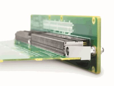 The waferized daughter-card assembly also provides single-ended and power wafer options. The backplane modules are available in 8 and 16 row increments on a 1.8mm x 1.8mm grid, with user-configurable keying and integrated stainless steel guide pin/keys.
