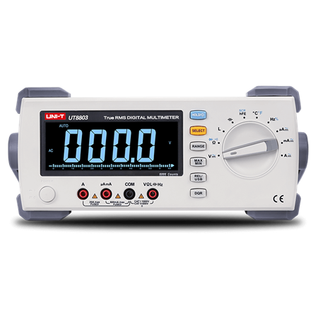 UT8803E, 6000 sayım 3 ⅚ dijital, otomatik aralık, taşınabilir masaüstü, AC ile çalışan bir dijital multimetredir. Arkadan aydınlatmalı geniş ekran, daha net ve okunması kolay büyük karakter ekranı. Tam işlev testi, tam kapsamlı aşırı yük koruması ve benzersiz görünüm tasarımı ile daha iyi performansa sahip bir elektrikli test cihazı haline geldi. Bu cihaz aşağıdakileri ölçmek için kullanılabilir: AC / DC voltajı, AC / DC akımı, direnç, frekans, kapasitans, endüktans, triyot HFE, diyot (LED), tristör (SCR) ve devre açma-kapama.