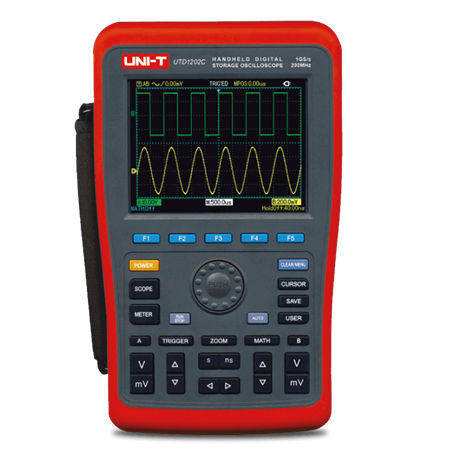 UTD1000C Serisi el tipi osiloskop, kullanıcı dostu, olağanüstü teknik göstergeler ve harici AC güç kaynağı veya yerleşik lityum pil ile çalıştırılabilen bir dizi gelişmiş özellik sunar. Keskin ve net LCD ve matematik işlevleri, sinyal koşullarının net bir şekilde gözlemlenmesini ve güvenilir bir şekilde analiz edilmesini sağlarken, güçlü tetikleme ve analitik işlevleri de dalga biçimlerinin elde edilmesini ve analiz edilmesini kolaylaştırır. Testi hızlı ve verimli bir şekilde tamamlamak için mükemmel bir araçtır. Tasarım, geleneksel enstrümanların kontrollerine dayandığından, kullanıcılar yeni birimleri öğrenmeye ve çalıştırmaya alışmaya önemli ölçüde zaman harcamadan kullanabilirler.