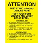 ESD Bileklik - Topuk bandı test istasyonu uyarı Levhası, sarı zemin üzerine siyah ingilizce yazılı, 432MM x 560MM, 5lik Paket