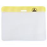 - Highly visible with yellow header and ESD Symbol allowing people to immediately know the badge holder is ESD protective.